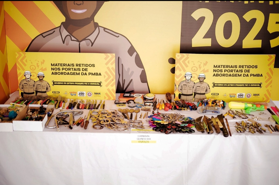 Com apreensão de mais de 4mil objetos não permitidos, através dos portais de abordagem, a Operação Carnaval 2025 apresentou dados sobre a segurança da festa na última reunião de avaliação, realizada nesta terça-feira (4), no Quartel do Comando Geral da Polícia Militar da Bahia, no Largo dos Aflitos. De acordo com a Secretaria de Segurança Pública do Estado da Bahia, no acumulado, a SSP destaca uma redução de 40% no número de crimes contra o patrimônio, a exemplo de furtos e roubos de celulares, além da diminuição de agressões físicas.