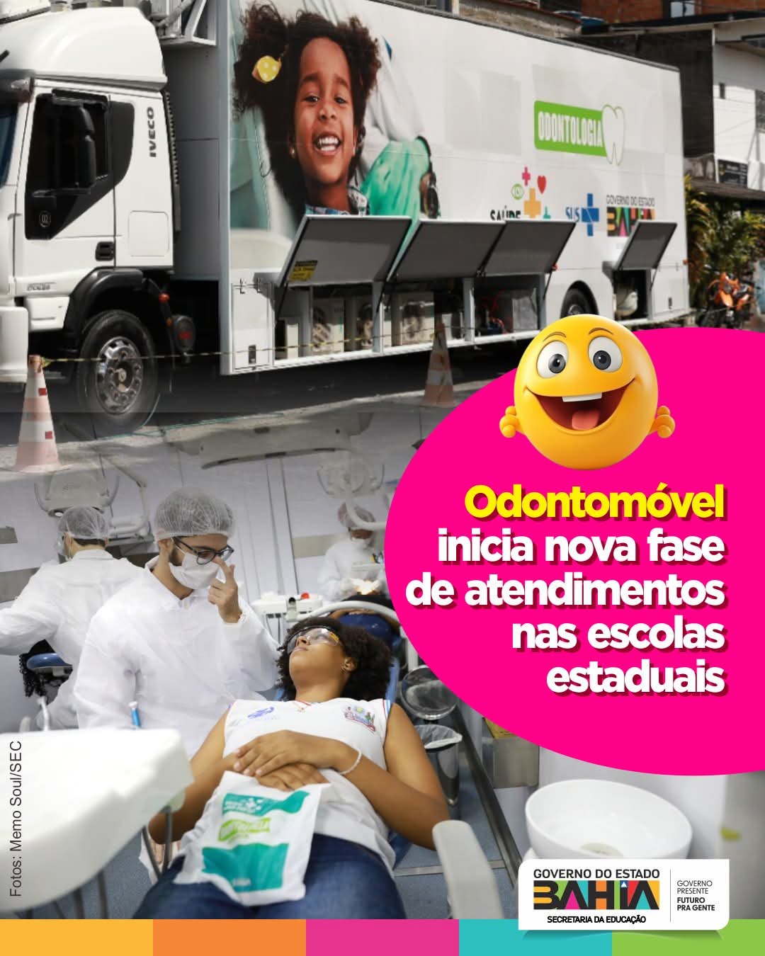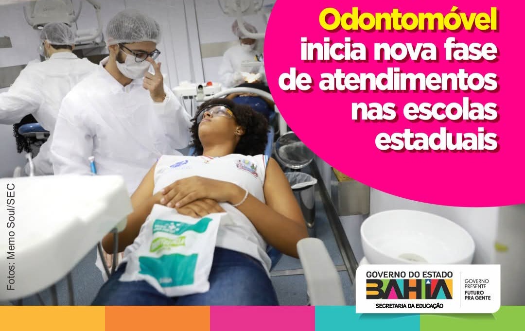 Levando serviços gratuitos de saúde bucal aos estudantes da rede estadual, o serviço itinerante de atendimento odontológico do Governo da Bahia integra o programa Saúde Mais Perto nas Escolas, promovido pelas secretarias estaduais da Educação e da Saúde.